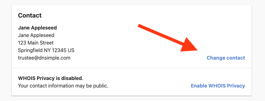 These instructions apply only to domains registered with DNSimple. If you are hosting the domain with us, and the domain is registered elsewhere, you will have to update the contact information at your current registrar, or transfer the domain to DNSimple.
