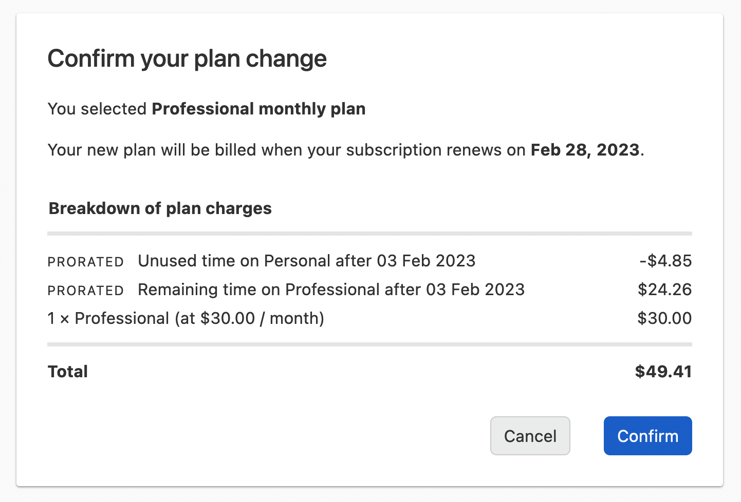 If you upgrade your subscription before your monthly renewal, the changes take effect and are billed immediately.